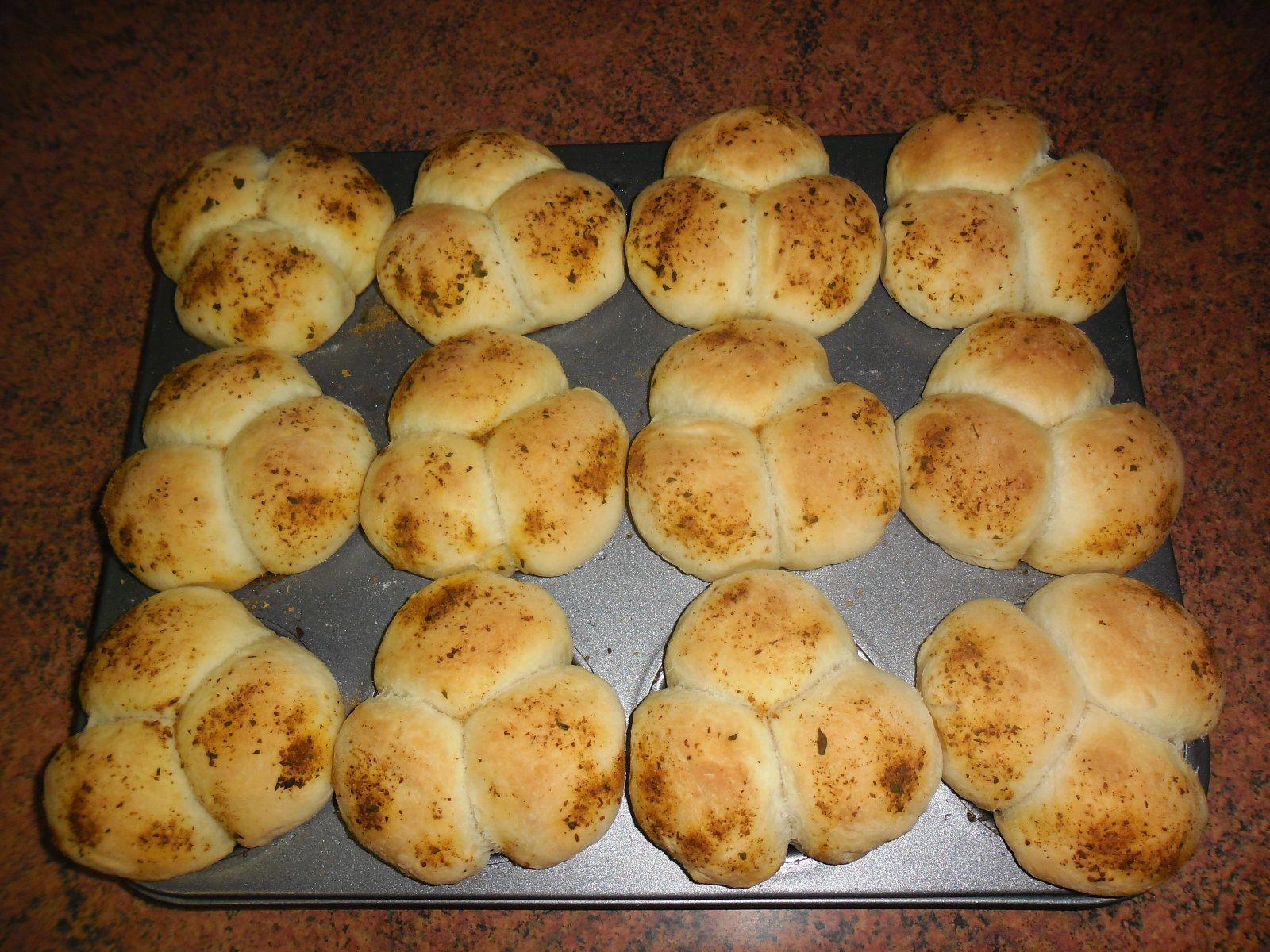 Plech na muffiny vymastíme sádlem a do každého důlku vložíme tři kuličky. Necháme znovu 30 minut nakynout a potřeme rozpuštěným sádlem. Posypeme grilovacím kořením a vložíme do trouby. Upečeme dozlatova na 180°C, cca 20 minut.