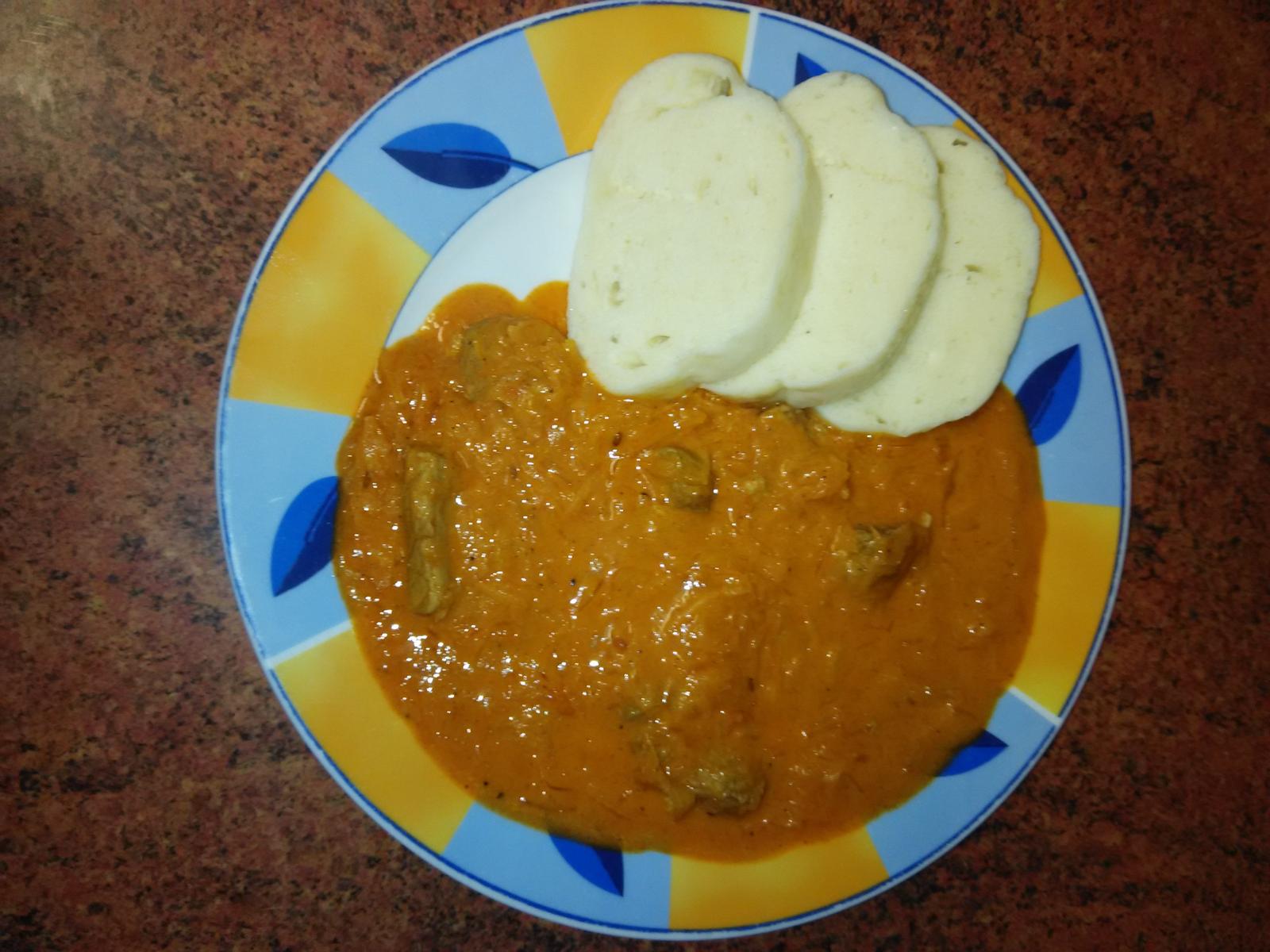Segedínský guláš Suroviny : sádlo vepřové maso - plecko nebo kýta 1 kg cibule 3- 4 ks sůl mletý pepř mletá sladká paprika 50 g bobkový list 2 ks nové koření 5 ks kysané zelí 0,75 kg (bez šťávy) smetana 30% 250 ml středně velký brambor Postup : Cibule nakrájíme nadrobno a osmažíme na sádle do tmavohněda. Přidáme maso nakrájené na kostky, osolíme a opepříme a chvilku spolu opražíme než se maso zatáhne. Přidáme papriku a zase chvilku opražíme. Podlejeme trošku vodou a přidáme bobkový list a nové koření. Dusíme než maso skoro úplně změkne. Potom přidáme nakrájené zelí a dovaříme vše doměkka. Brambor nastrouháme a dáme ho do guláše tak na 10 minut povařit. Potom přidáme smetanu a už jen krátce provaříme. Dochutíme podle chuti. Domácí kynutý knedlík v domácí pekárně Suroviny : mléko 250 ml hrubá mouka 500 g vejce 1 ks (nebo 1 lžíce olivového oleje) cukr krystal 1 rovná lžička sůl 1 lžička sušené droždí 2 rovné lžičky olej Postup : Těsto nám vymísí a vykyne pekárnička. Vykynuté těsto rozdělíme na 2 stejné části a vytvarujeme knedlíky. Přikryjeme čistou utěrkou a necháme ještě kynout než nám začne vařit osolená voda. Vložíme do vroucí vody a vaříme 20 minut - po 10 minutách otočíme na druhou stranu. Po uvaření na desce hned promícháme špejlí a ponatíráme olejem.
