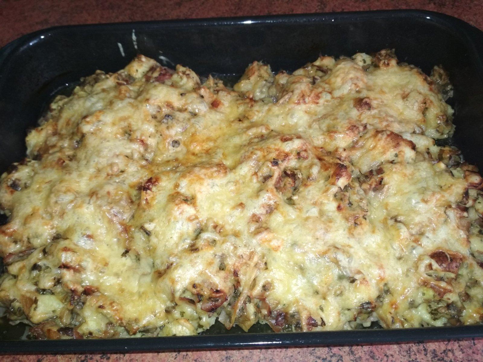 Pak alobal odstraníme, posypeme nastrouhaným sýrem a pečeme ještě chvilinku do zrůžovění.