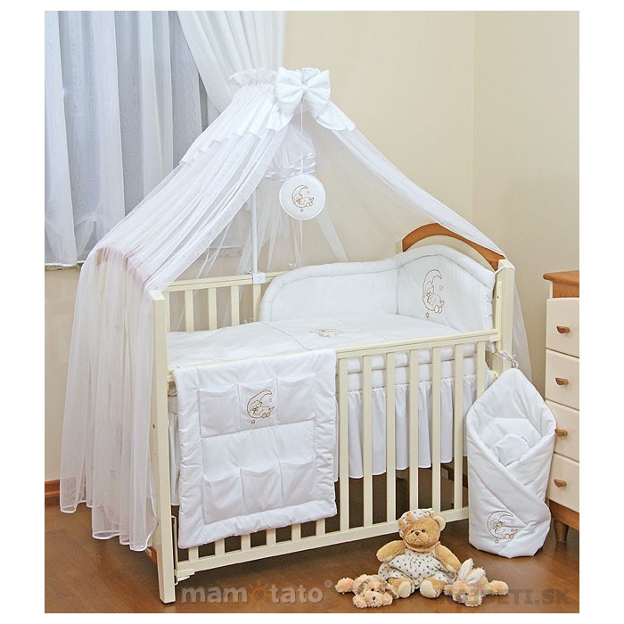 Baldachyn je zbytocny, ale mantinely nie. Tie robia take pekne utulne prostredie v tej postielke.