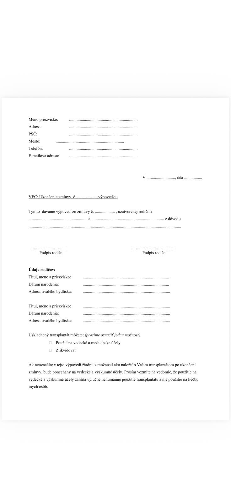 @amel ano vola som tam poslai mi tlacivo, ktore musim vypisat a vratit im spat kde sa mam rozhonut ci material bude zniceny alebo pouzity na vedecke a medicinske ucely