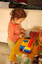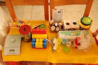 také po domácky vyrobené hračky, hry, niektoré montessori..... hlavne dávam malej to čo si pýta.... keď chce kresliť tak jej spravím veľký bal.papier na ladničku, a tam kreslí, aj ja 🙂, keď chce nosiť bábiku tak jej spravím babyšatku 😀DD..... keď chce napichávať, tak hľadám čo by mohla kde a načo.... atď.....