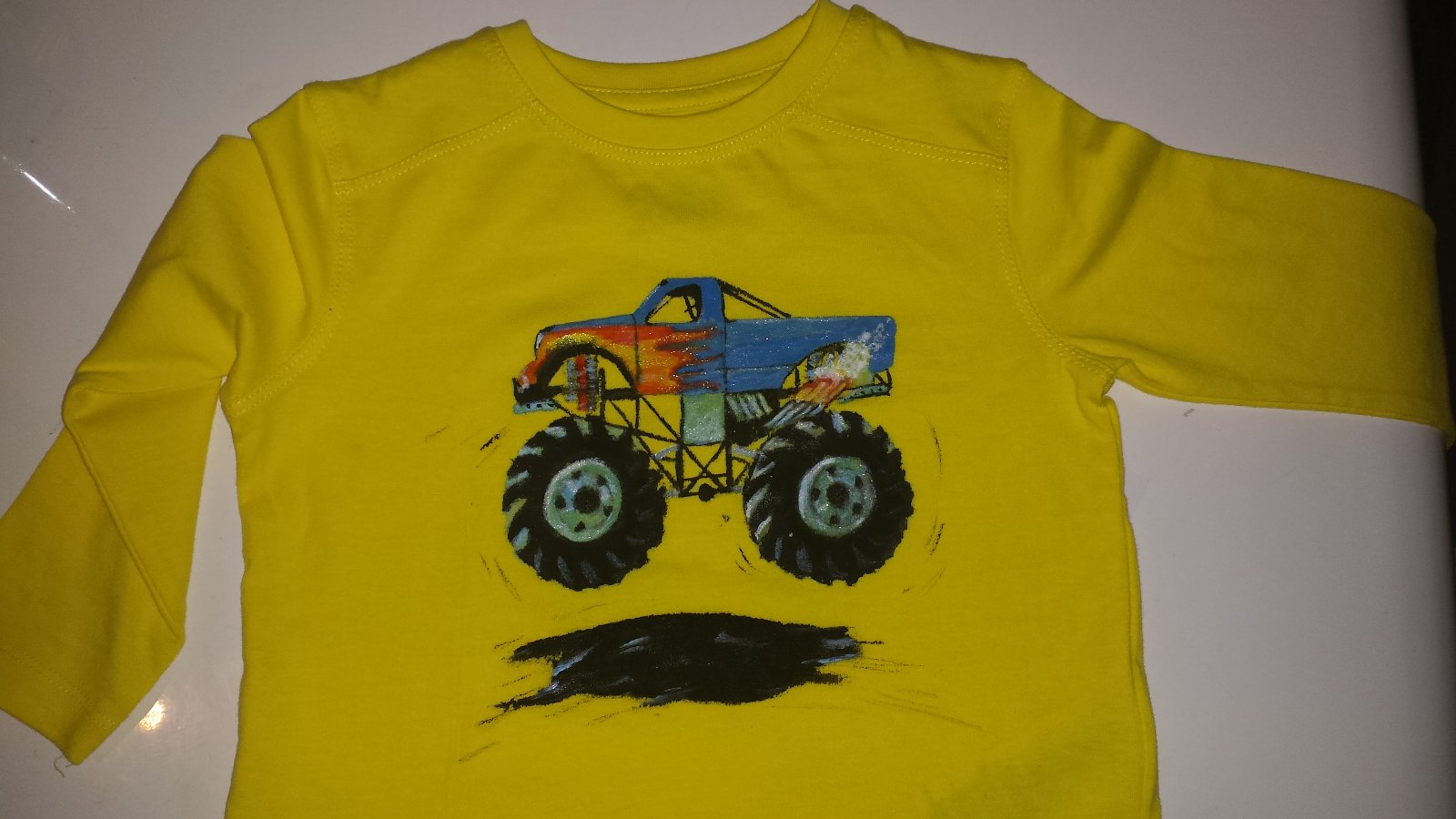 Monster truck mania sa uz pretavila do ranajsieho revu,lebo on chce mat tricko s monster truckom. No co mamka pre synka neurobi