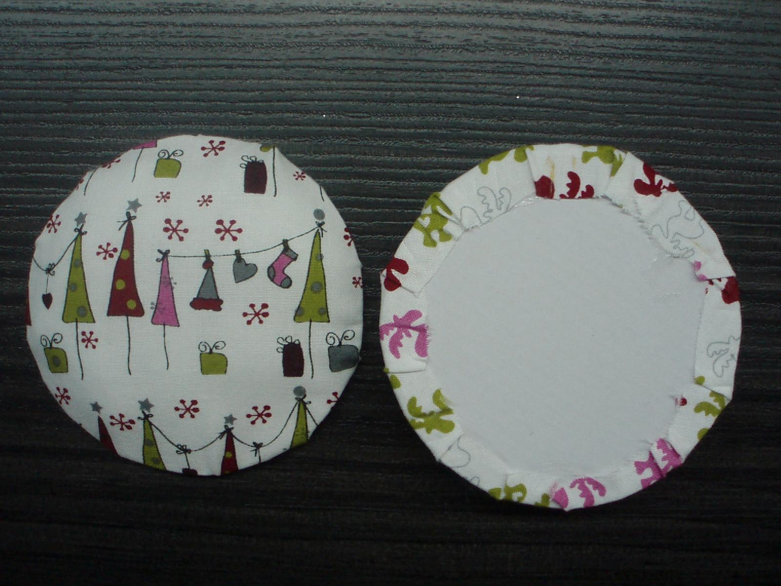 🌠 vystrihneme si z kartónu 6 kruhov, 3 s priemerom 9cm, 3 s priemerom 13cm. K tomu si vystrihneme kruhy z látky a filcu (ja som mala 5 z látok a 1 z bieleho filcu), vždy o 4 cm väčšie ako kartónový kruh. Na biely filc som si dovolila zaimprovizovať vzor z jednej z látok, takže z farebných filcov som si vystrihla stromčeky resp.hviezdičky.