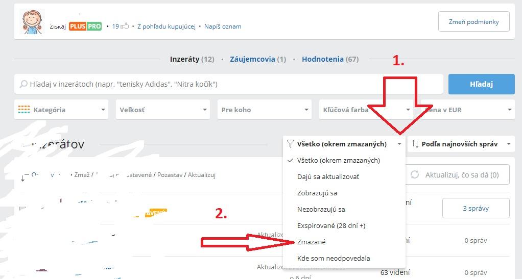 Zmazane inzeraty najdes v sekcii moj bazar -historia