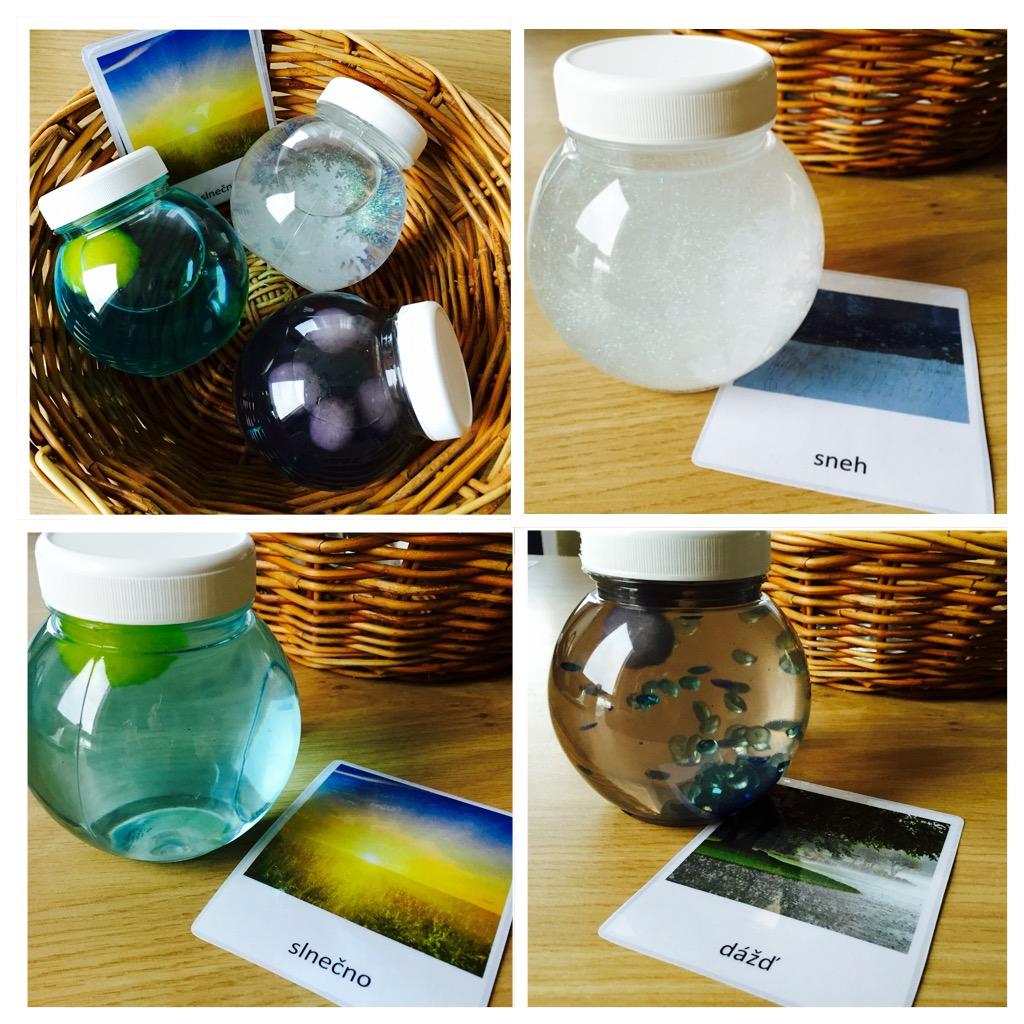 Zafarbila som vodu na tmavo a dala tam modre trblietky a flitre 🙂