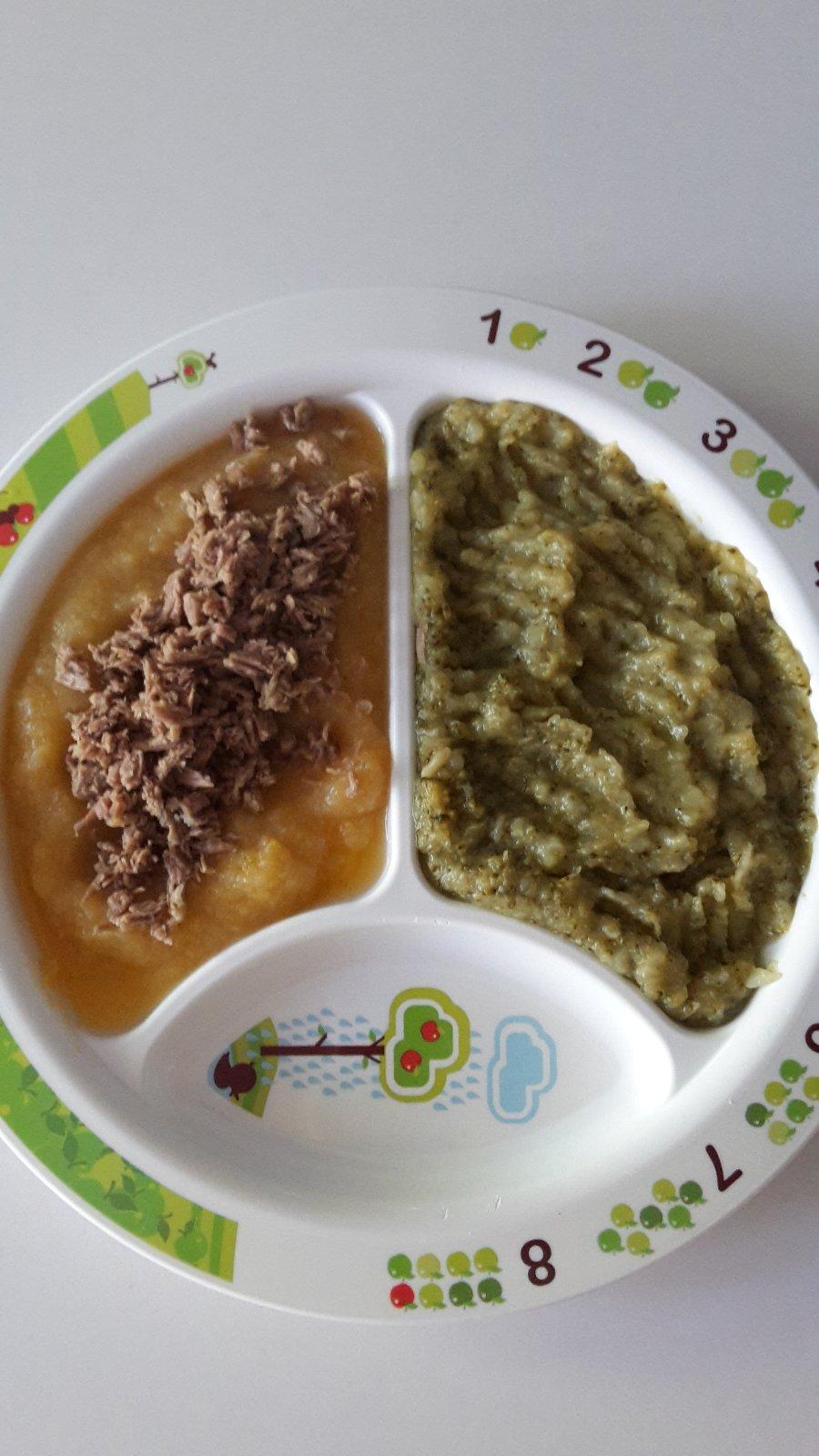 Jahnacinka na zeleninovej omacke;zemiakove pyre s brokolicou.
