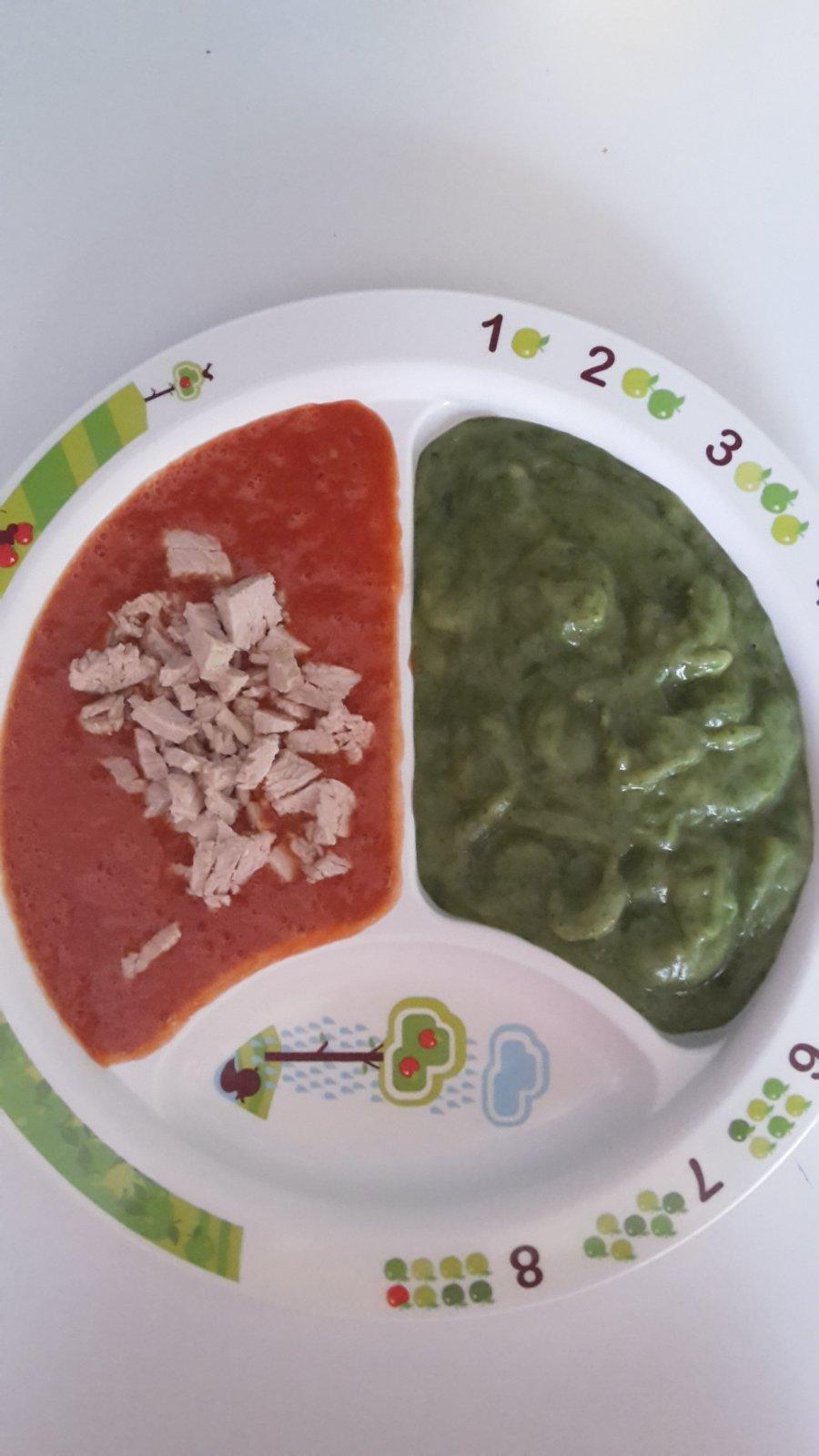Kralik na paradajkach a spenatovo cuketove pyre.