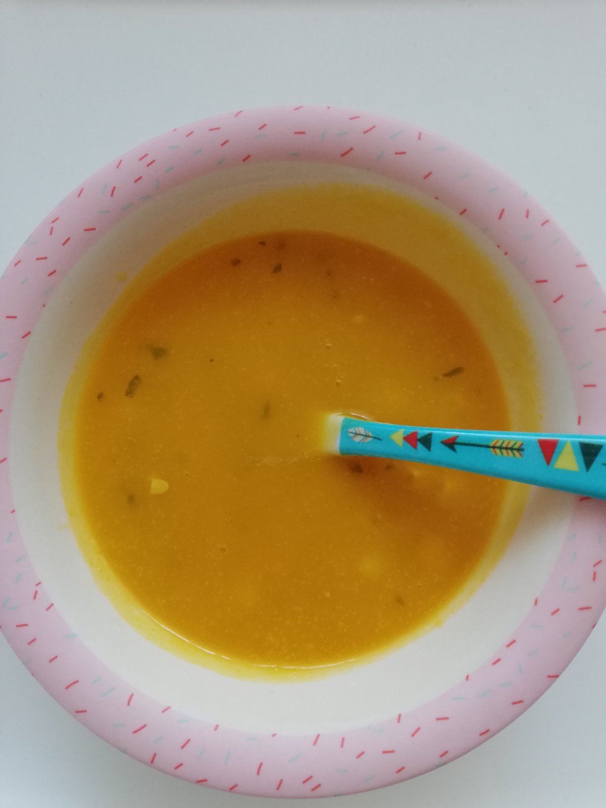 Kremova zeleninova polievka s kukuricou(oliv. Olej, salotka, mrkva, petrzlen, zemiak, cuketa, hokaido, maslova tekvica).