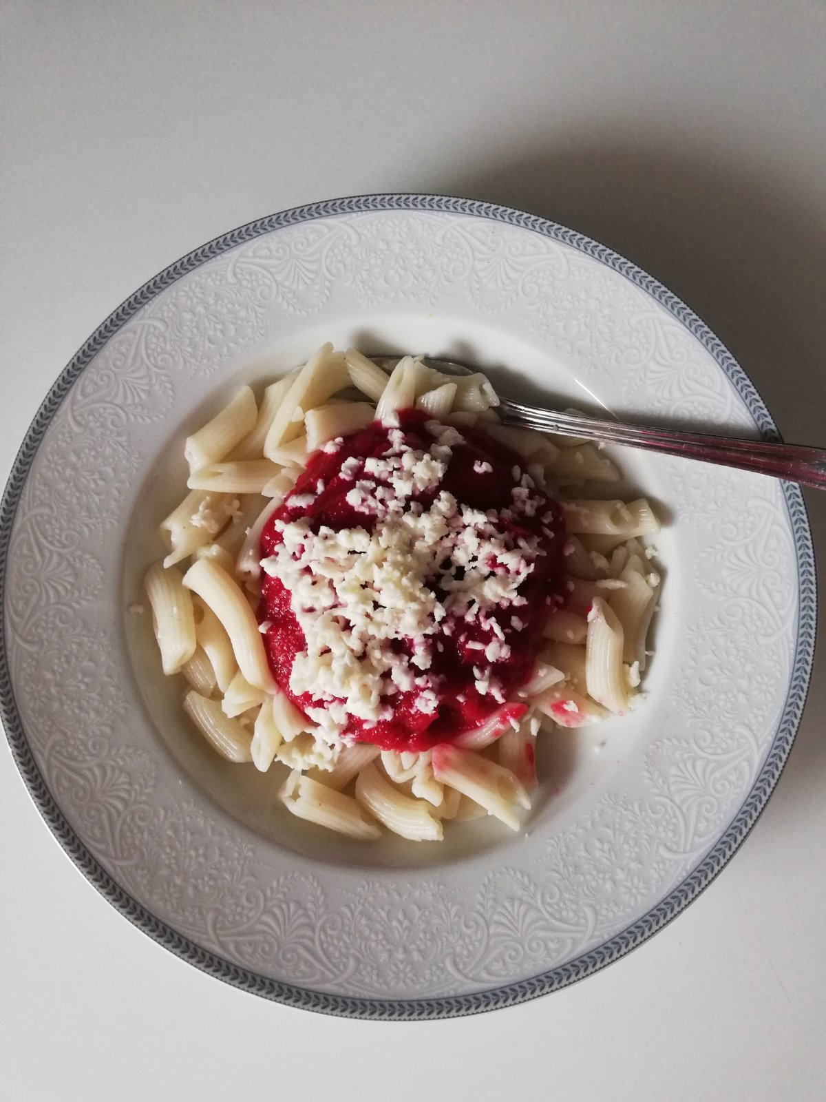 autorNic zvláštne len predvarit cviklu naparit hokaido karfiol spolu rozmixovat a dat na uvarene cestoviny pokvapkáme olejom a posypeme syrom