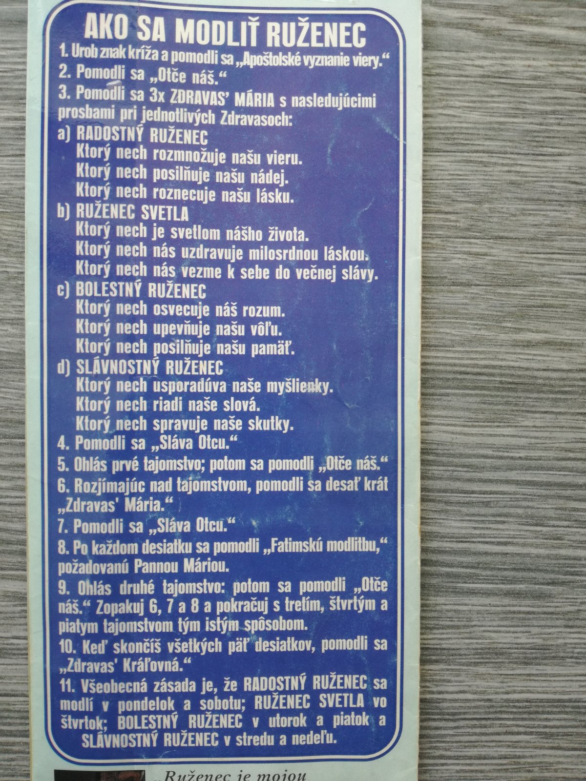 @demartka to je blbost ved na desiatku teda kde je desat guliciek sa to modli medzi desiatkami je ich 5 je ale samostatne 1 zrnko tam sa modli preddesiatok 3x zdravas s tajomstvami nie?
