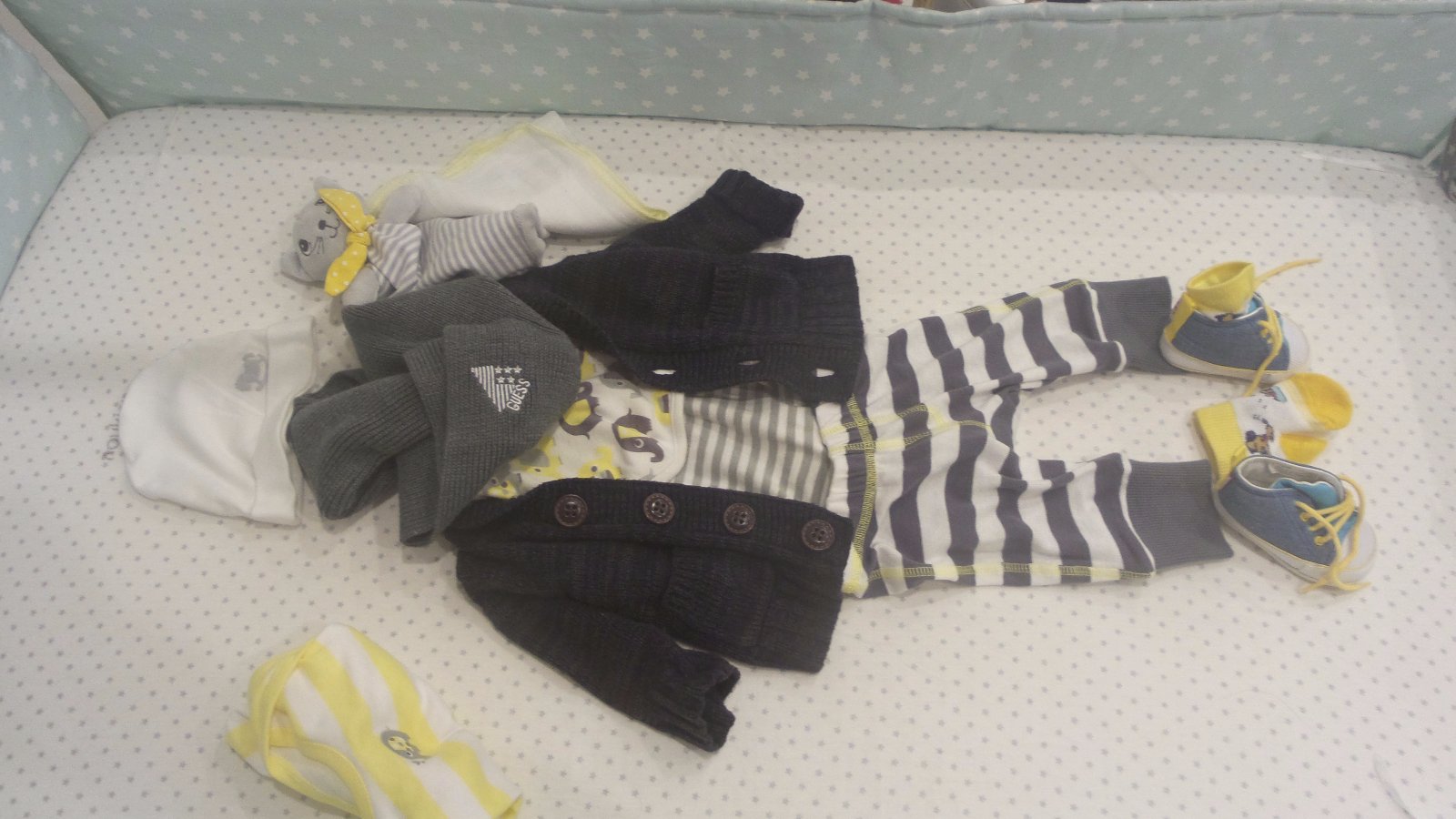 svetrik HM vel. 62, tenisky LNT so zltymi snutkami 3-6 m