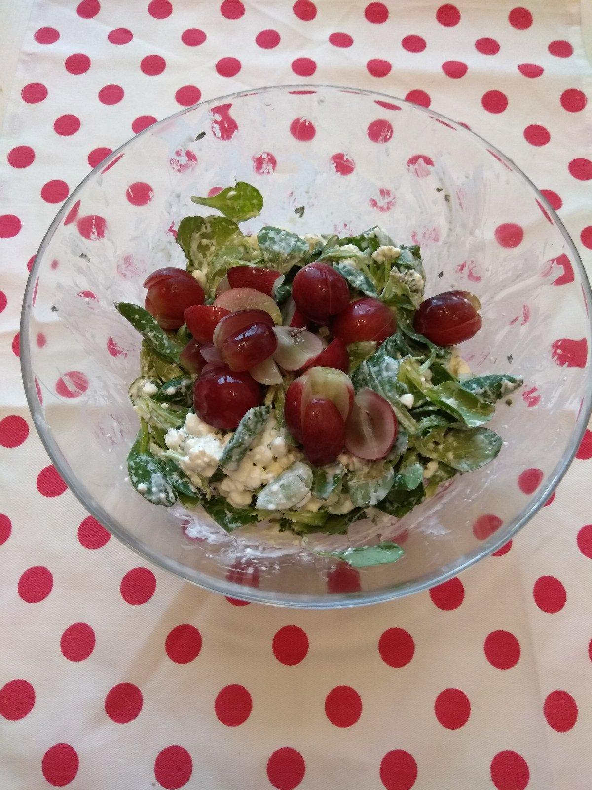 Cottage cheese vymiešajte s feta syrom,salatvymi bylinkami,k tomu zelený šalát a navrchu je horzno;)famózna kombinacia