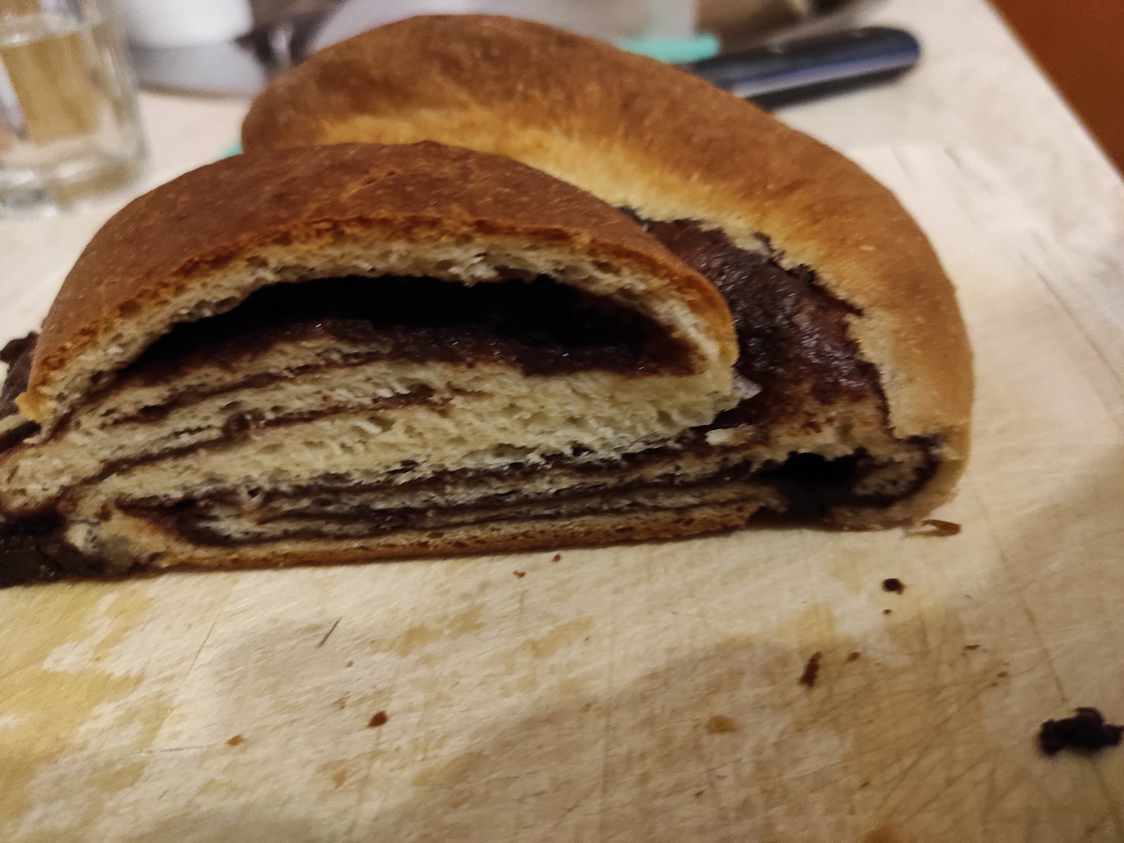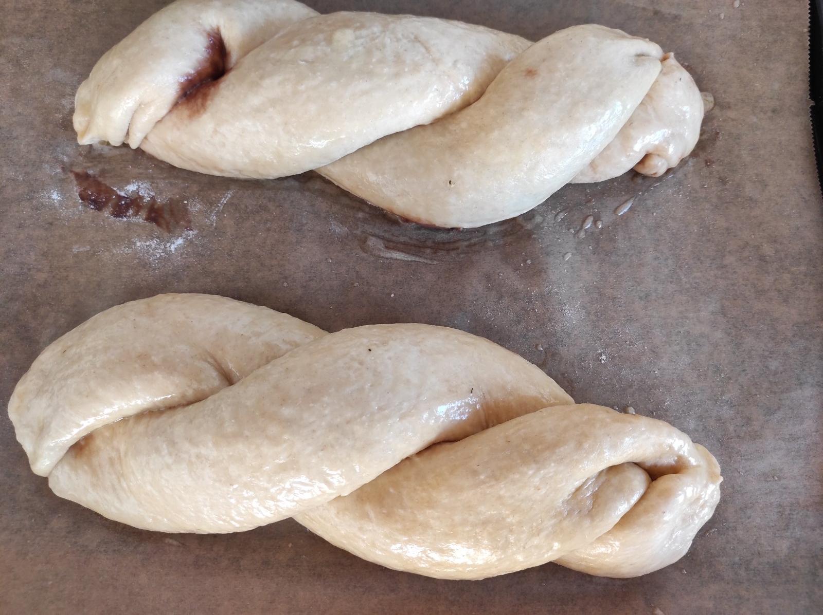 @libus83 cesto: 500g múky, droždie sušené/kvások,0.5dcl oleja,3pl cukru,štipka soli a cca 270ml teplého mlieka...vymiesit také vlacno-tuhsie cesto tuhšie ako na buchty...nechať podkysnúť....uvariť si hustejší puding zo 450ml mlieka,ja som jednu misku odobrala synovi aj tak sa zvýšilo,a do zvyšku vmisat 125g masla,nechať úplne vychladnúť...ja som do tej teplej pudingového masy dala ešte Mikuláša čokoládového a veľkú lyžicu gránka...😂rozdelis poskytnuté cesto na 4 rovnaké časti každú vyvalkas a potries vychladnutou zmesou...nezvinies ale prekladas,dva takéto zavinceky zvinies ešte do vrkoča ako vidíš na foto,spoje na konci pritlačis...nechám ešte 30min podkysnúť a pečiem 25-30min na 180st potreté olroztopenym maslo