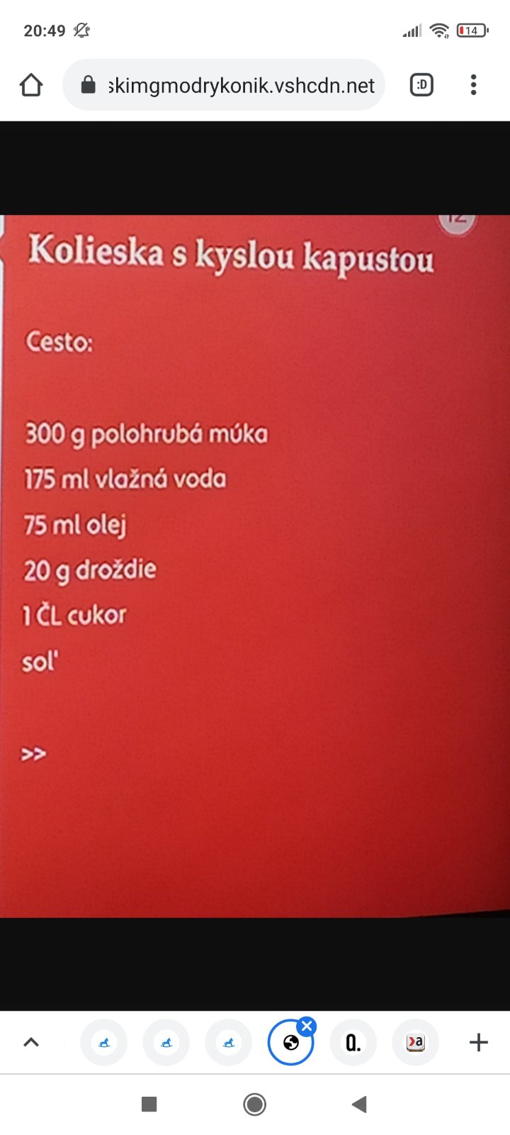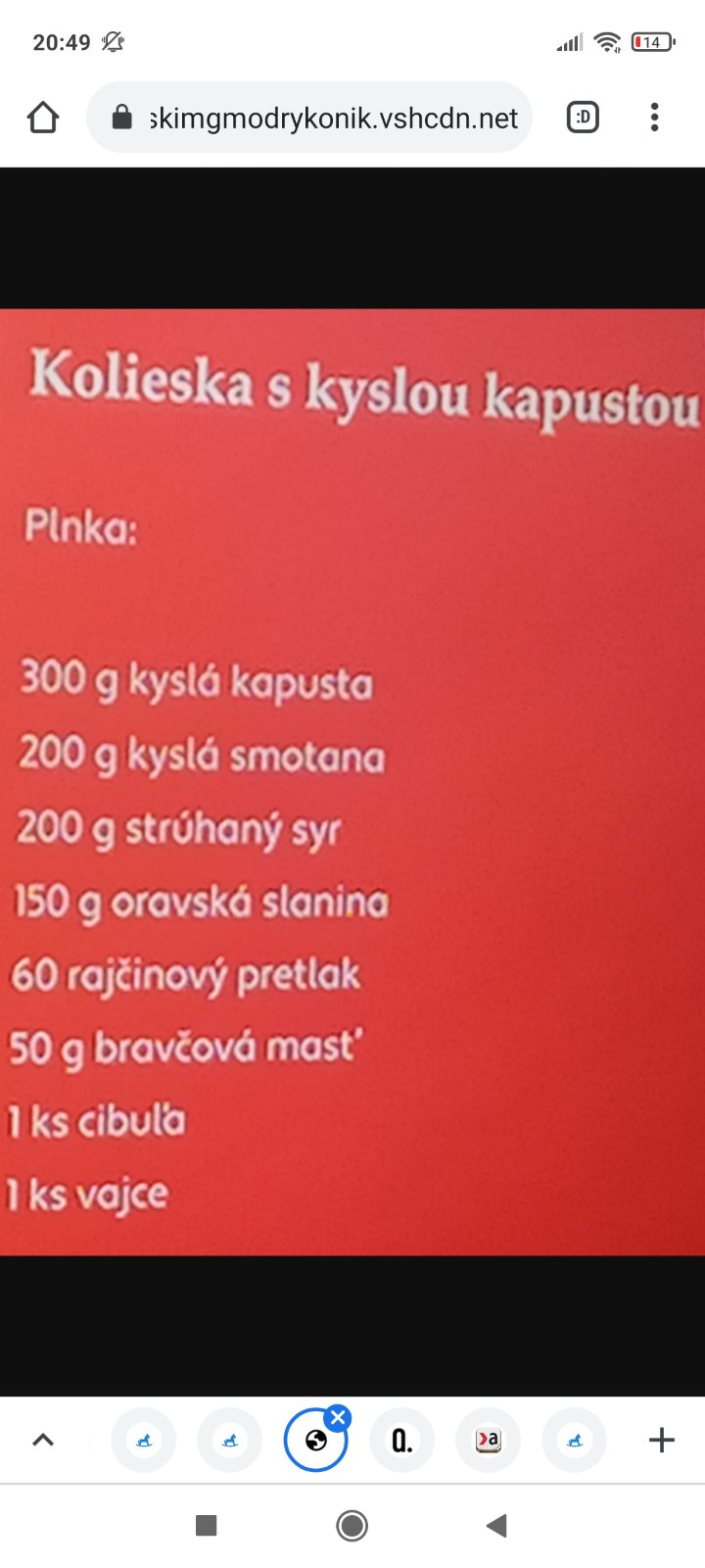 autorCesto som robila veľmi podobné odoka...klasické husté kysnuté cesto slané....a plnka v mojich je: mala fľaštička kapusty,1 pretlak,saláma to s si zmiešala v miske,rozvaľkáne vykysnuté cesto(rozvaľkáme na tenucko)som potrela kyslou smotanou,na to plnku,zvinula,krajská na 3cm slimáky...toto cesto veľmi nepodrastie v rúre tak sa ich nebojte dať kľudne aj bližšie k sebe...potrela som podkysnute vajíčkom,pečieme 20-25min na 180st(podľa rúrY)10min pred koncom som posypala syrom