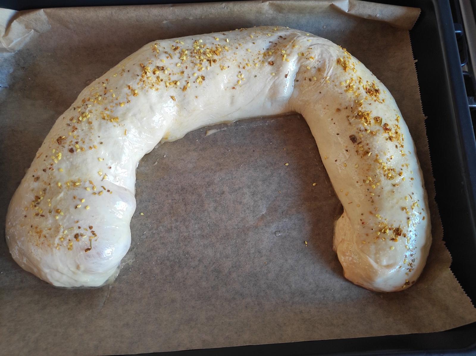 autor@denisa66687 klasické kysnuté cesto bez vajíčka,rozvaľká,potries bohaté paradajkový rpetlakom posypeme pizza korením,šunka,syr,slaama,kukurica,zvinie,potries vajíčkom,ja ešte posypem soľou a pečieme cca 30min na 180st