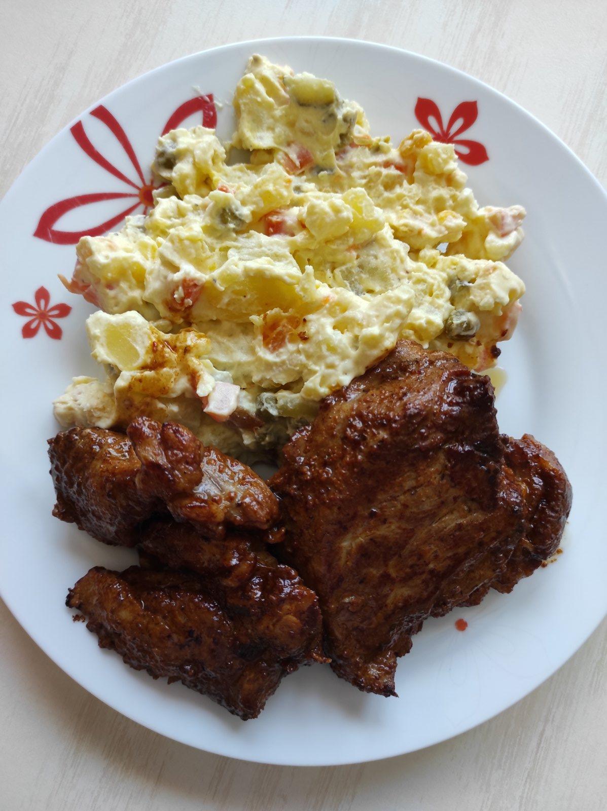 Krkovička marinovana 24 hodín v pive a korení😋a zemiakový šalát s domácou majonézou😴😴😴
