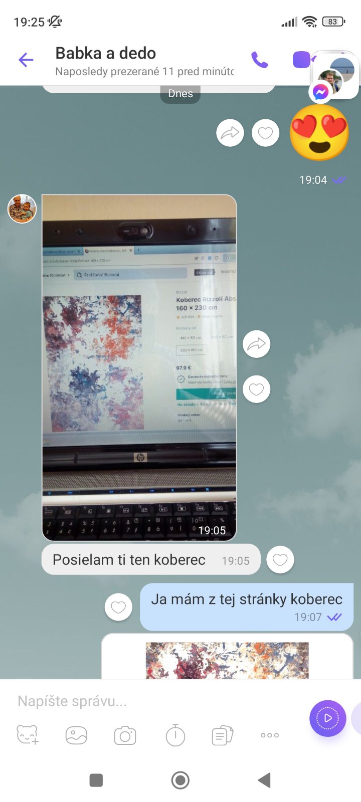 Ja to chápem tak, že babka si chce objednať koberec rovnaký ako ma autorka článku ☺️ a je super ze babka v dnešnej dobe ovláda "moderné" technológie ☺️. Mam podobne vekovo mladú babku a ta mi vypisuje cez whatsap a najťažšej mam ked mi pošle hlasovku, tie si sťahujem na pamiatku ❤️