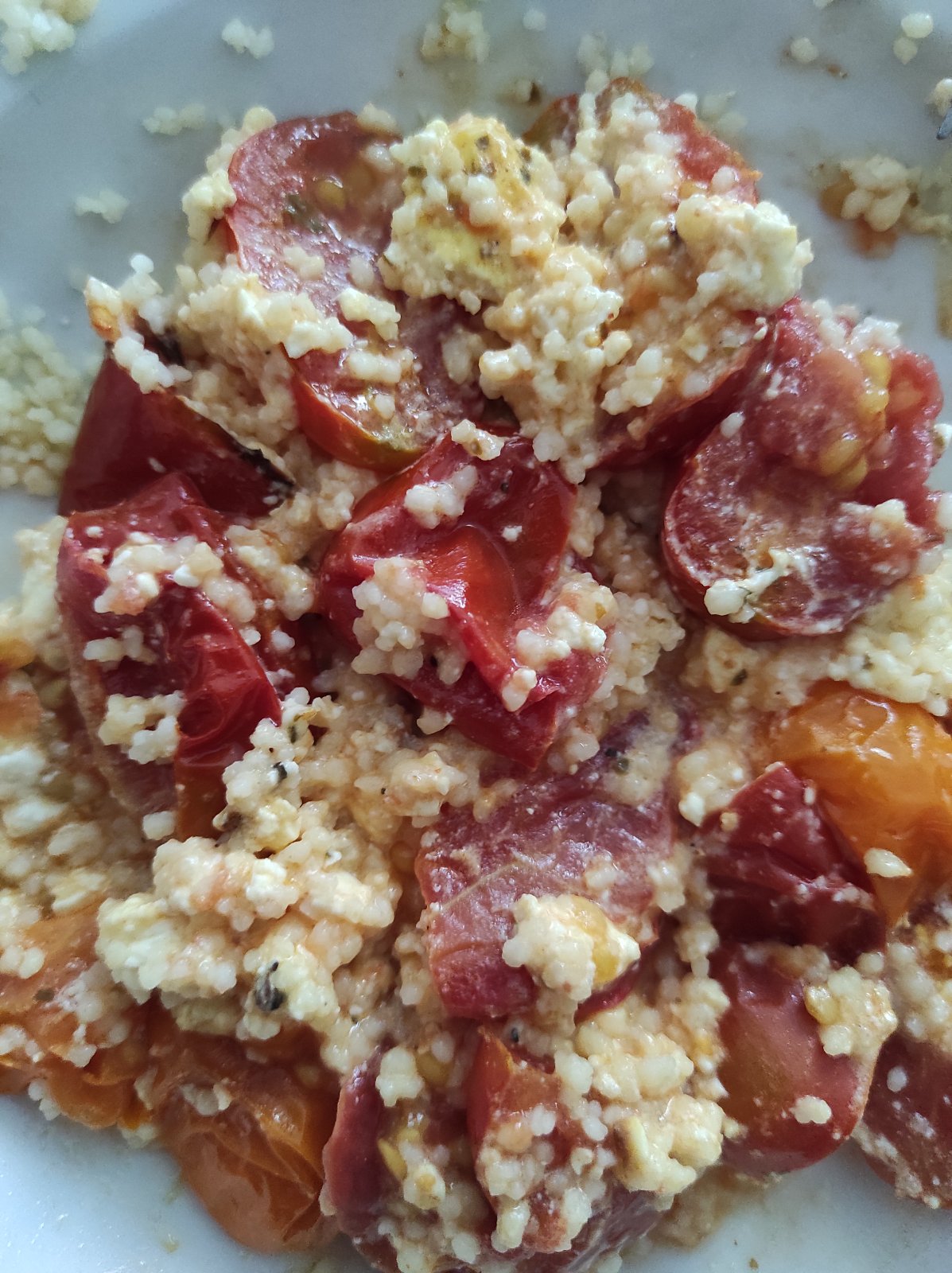 Tak toto bola neskutočná mňamka😋(PS.za výzor môjho obeda sa ospravedlňujem snad má ušetríte komentárov k výzoru🤭)...balkánsky syr,cesnak,paradajka,olej gril korenie ugrilovane narýchlo...+kus kus...alebo keď už nevieš čo s paradajkami😂
