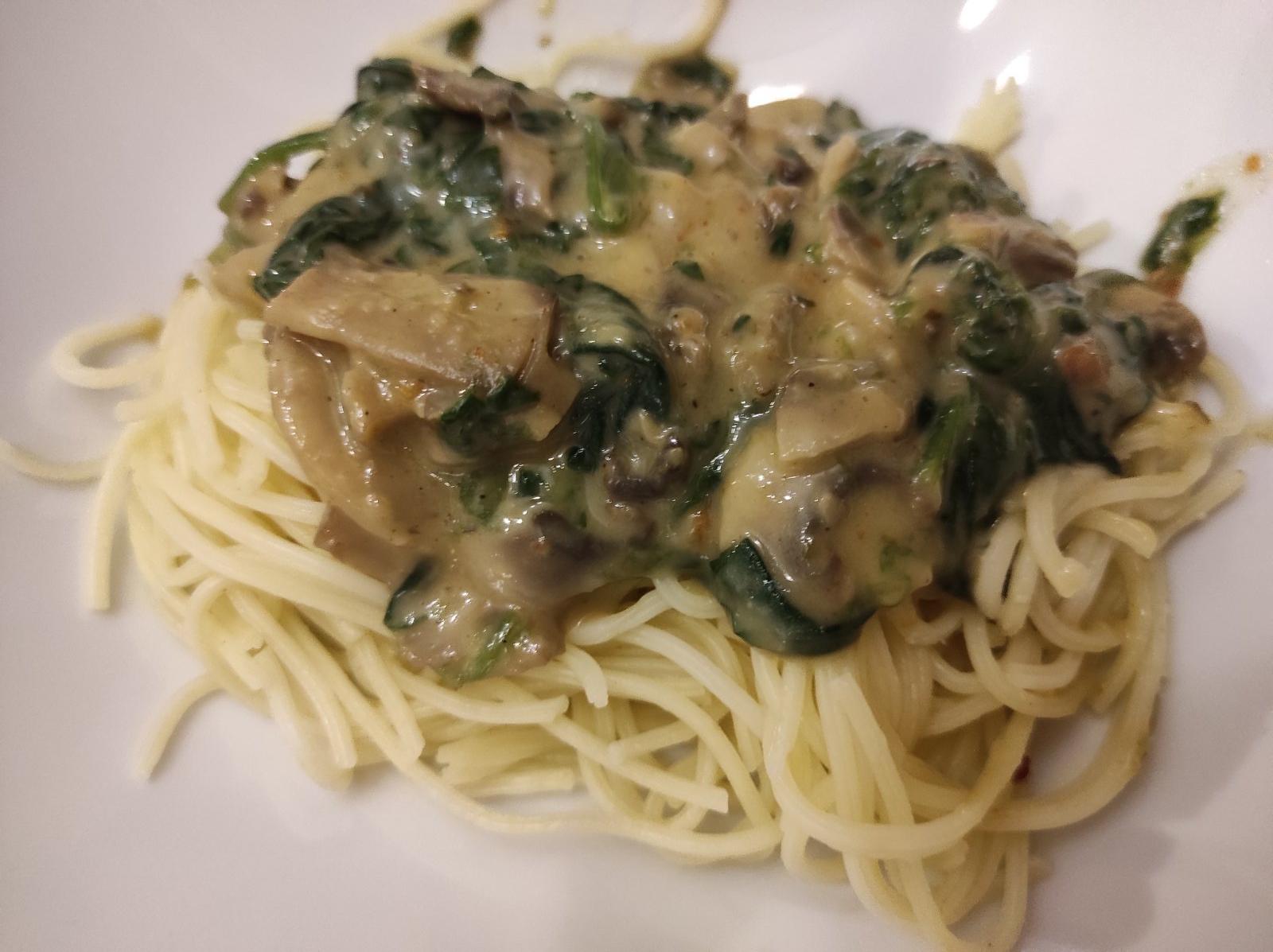Vegánske 🍝 špagety....sampionovo-spenatovo smotanové....☺️🍝