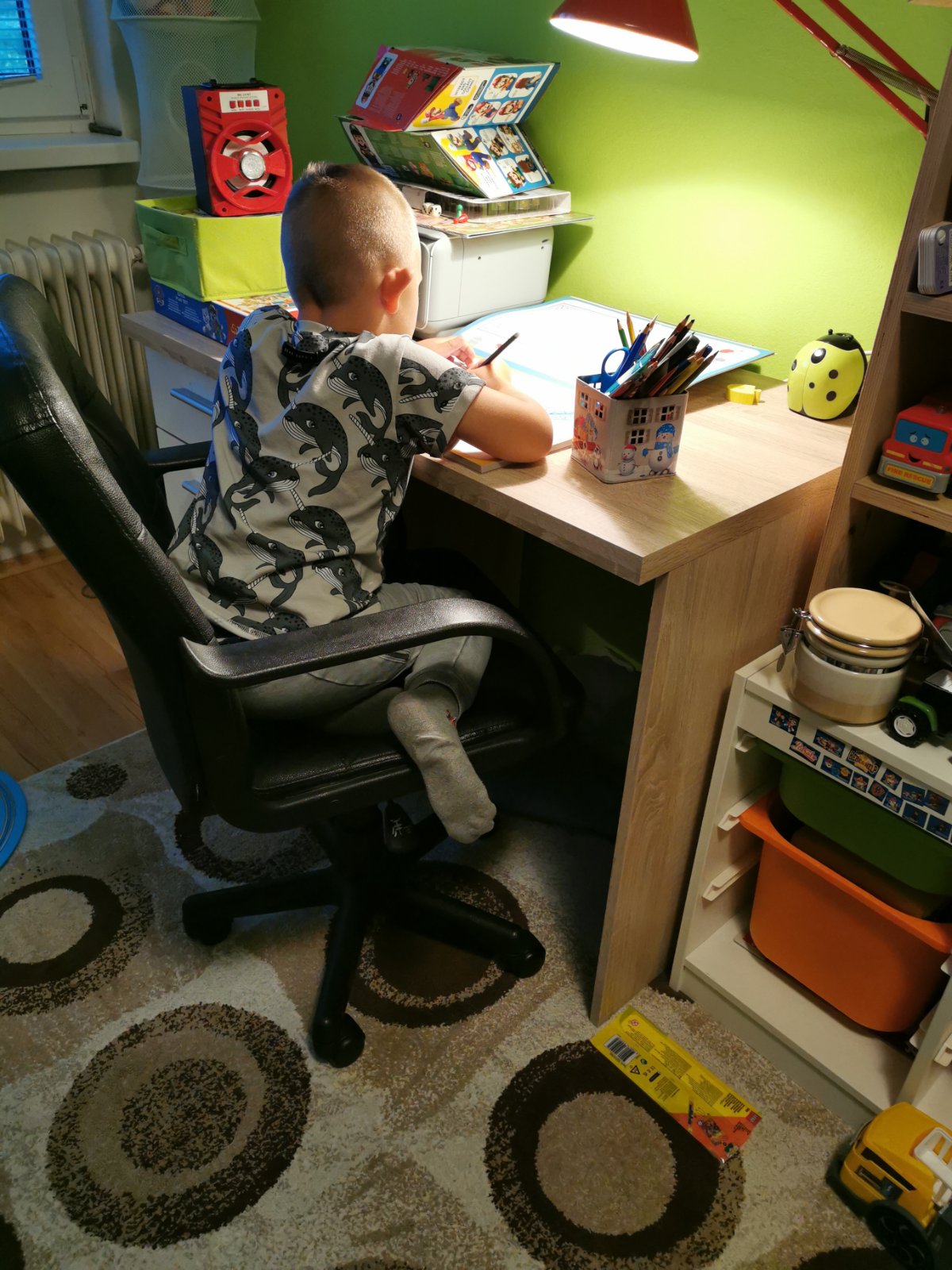 Ahojte, je čas kúpiť stoličku k písaciemu stolu Miskovi (5 rokov). Akú odporúčate? Aby bola ergonomicka co to vydržala keďže za rok je aj škola...Má ešte moju starú. Nesedaval tam vôbec doteraz...Foto na upútanie..Ďakujem