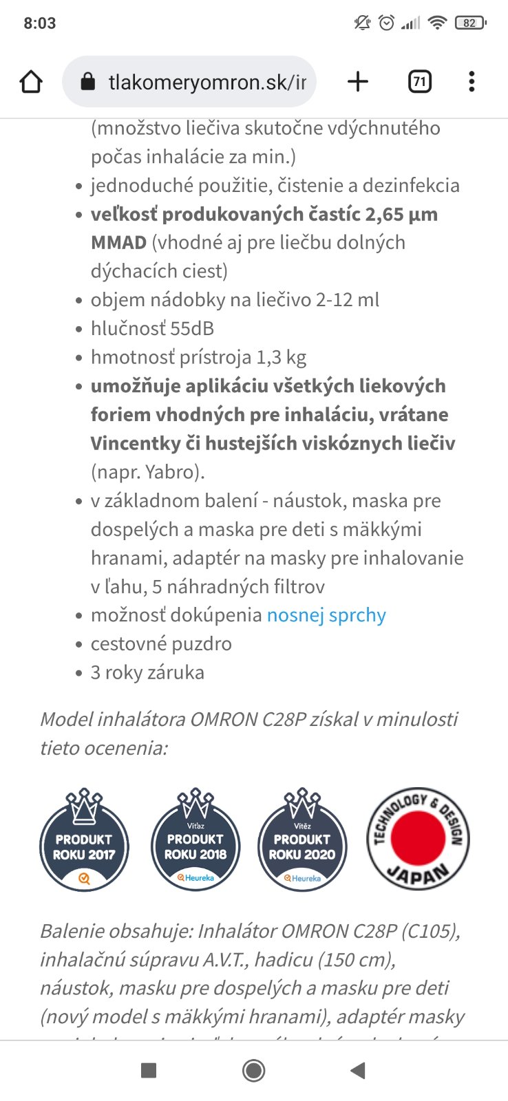 @evula1984 pozrite, nejdem sa s vami hadat, kazdopadne ste videli, ze neplati vhodnost Vincentky pri kazdom Omrone, je treba pozerat pri kazdom type na co je vhodny a ake lieciva su vhodne, znaciek na trhu je vela a neda sa jednoznacne povedat ze tento je najlepsi. Mojim poziadavkam vyhovuje napriklad prenosny od Scala, ktory je ultrazvukovy, v baleni dve masky, je na baterky a maly aj do detských ruk. Co sa tyka Microlife pomer cena vykon za mna lepsi ako Omron.