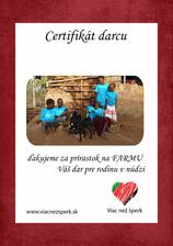 Chyba Vam darcek? Hladate nieco originalne a zmysluplne? Obdarujte Vasich blizkych darcekom, ktory pomoze rodinam v nudzi. Kupte kozu alebo 2 sliepky a zasleme vam CERTIFIKAT DARCU s Vasim menom alebo menom, ktore si budete zelat uviest na certifikate v elektronickej podobe. Viac informacii najdete na stranke http://www.viacnezsperk.sk/proj/farma-projekt/ alebo mi napiste.