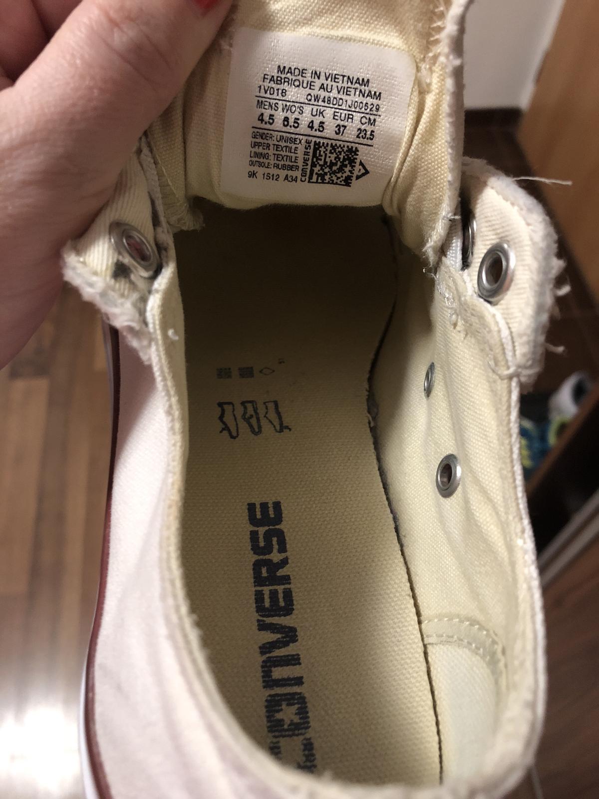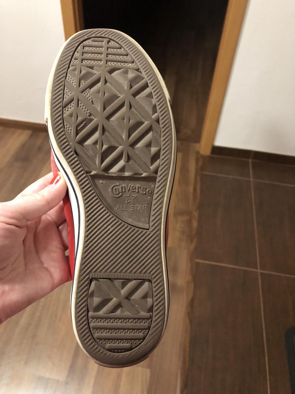 @tinuska158 táto druhá foto sú originál, ale tie prvé nie. Original nemá zboku všité 🙂 nás je 5 a všetci nosíme roky converse, a ani jedny nemali tak danú visačku.