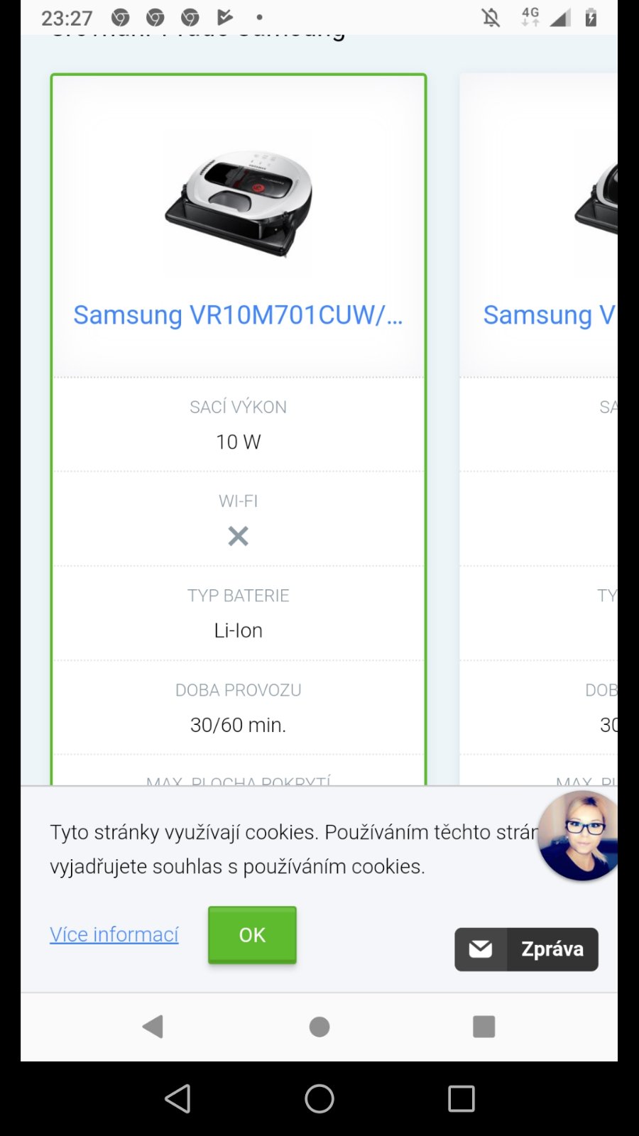 Ja mám I robot roomba 966 a som s ním max. spokojná. Keď jej vezmú späť ten Samsung, tak nech si dá záležať na tom aký vysávač si berie, lebo tie lacnejšie nielen že nemajú appku, wifi atď. ... no sú aj ,,hlúpši,, napr. v tomto, vybije sa v strede izby a nedôjde naspäť do svojej stanice (tým pádom ho musíš hľadať kde zostal trčať), nepovysava poriadne, plnou párov narazí do steny, neprejede vyšší prah a tak ... My sme tiež iba pred týždňom brali robotický vysávač, no dali sme si záležať na tom aby bol ozaj spoľahlivý keďže už dáme toľko peňazí zaňho... Moja Roomba sa vždy pekne vráti späť, zapínam, vypínam, ovládam, mením trasu, sledujem stav batérie atd. pekne z mobilu cez appku a vôbec nemusím za ním behať... Super vecička ... Ozaj som s ňou veľmi spokojná a môžem len odporúčať.