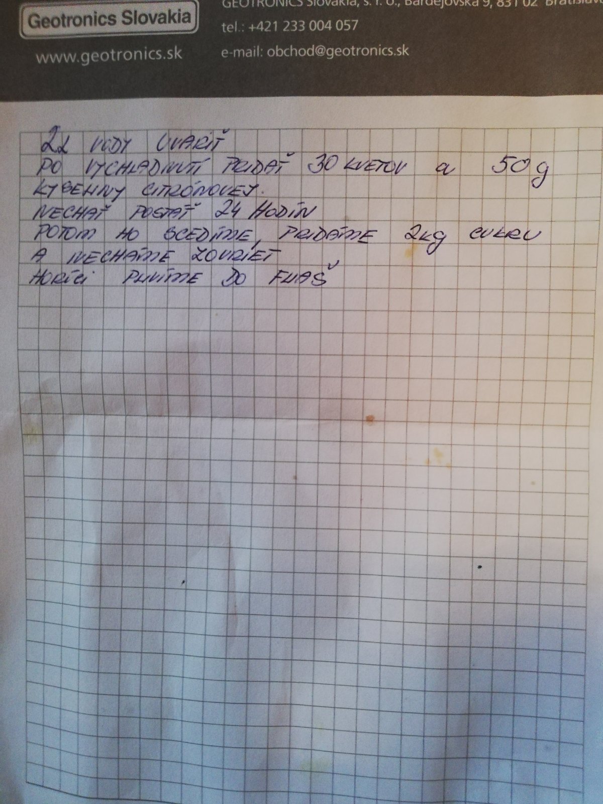 Ja som tento rok vyskúšala oba varianty -aj zaliať vriacou vodou aj prevarenou studenou vodou. Musím povedať že zaliate so studenou vodou nám chutí viac. Recept jednoduchý na každý liter prvarenej vychladnutej vody ide cca 40-50 ks kvetov. Nechať odstáť 24 hodín. Potom precediť a na každý liter vody ide kg cukru. Ja som dala na 4 l vody 2 citróny alebo polovicu kyseliny citrónovej.