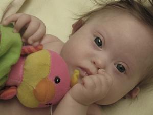 nádherná malinká, a krásny dôkaz toho že ked sa má bábo dostať na svet dostane sa 🙂 úžasný dar života.....a zaroven ukažka "stopercentnosti" vyšetrení NT a tripple testov.... ale vdaka tomu mate tohto anjelika a ako baby pišu a myslim že sami doma zistujete že detičky s DS sú úžasné a radosť rozdávajúce stvorenia - už len veľa zdravíčka malej a trpezlivosti rodinke 🙂