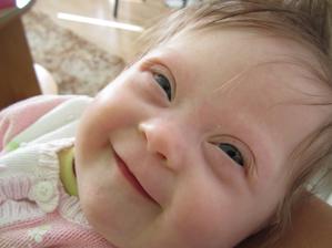 krásne dievčatko!z vlastnej skúsenosti viem,že detičky s DS sú neskutočne milé,vyžaruje z nich obrovská dobrota 🙂 prajem vám veľa radosti z dcérky