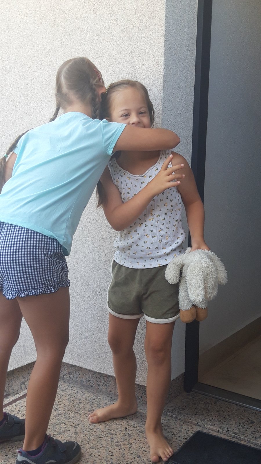 Boli sme milo prekvapený, keď rodina kde sme sa ubytovali mali dievčatko s DS ...Bolo to hneď vidieť na starkej dievčatka, lebo len čo Viktorka vystúpila z auta ,pani sa na ňu nesmierne milo zahľadela a dlho usmievala ,videli sme na nej pohľade že ma asi skúseností s týmito deťmi a potom sme sa dozvedeli o Niki ...Vitorka ju na druhý deň uvidela a hneď sa ma spýtala že ma ,,dolnov syndlom,, zdá sa že vie rozoznať,,svojich ,, 😍 ...Viki sa hneď zalubila do Niki a musela sa s ňou rozlúčiť objatim..