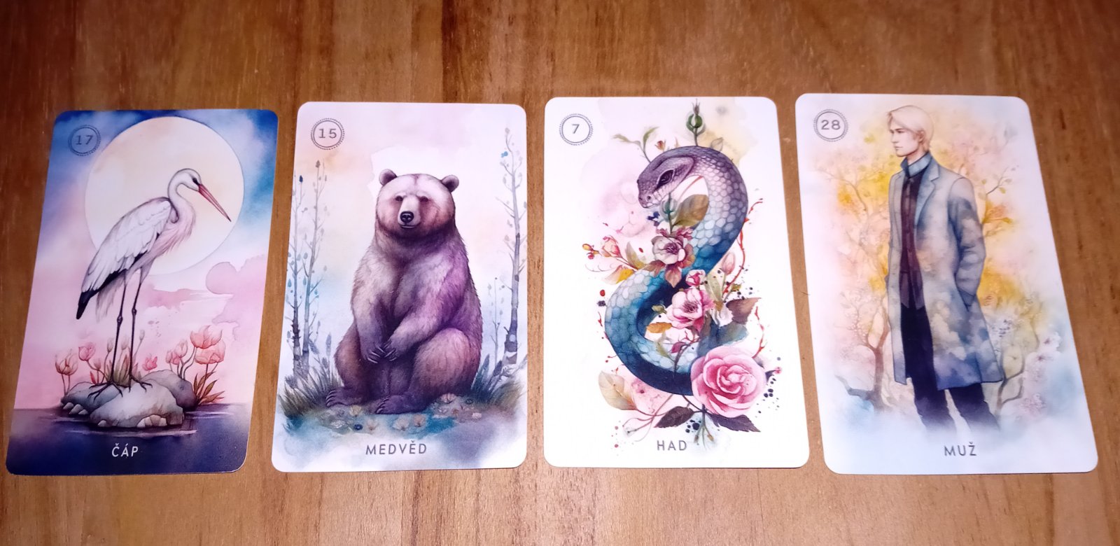 Karty: Čáp – Medveď – Had – Muž