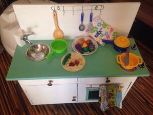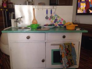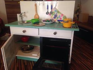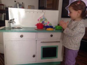 K druhým narodeninám sme pre dcérku spolu s manželom prerobili starú skrinku a kuchynku, nie je to úplne dokonalé, ale radosť je obrovská.