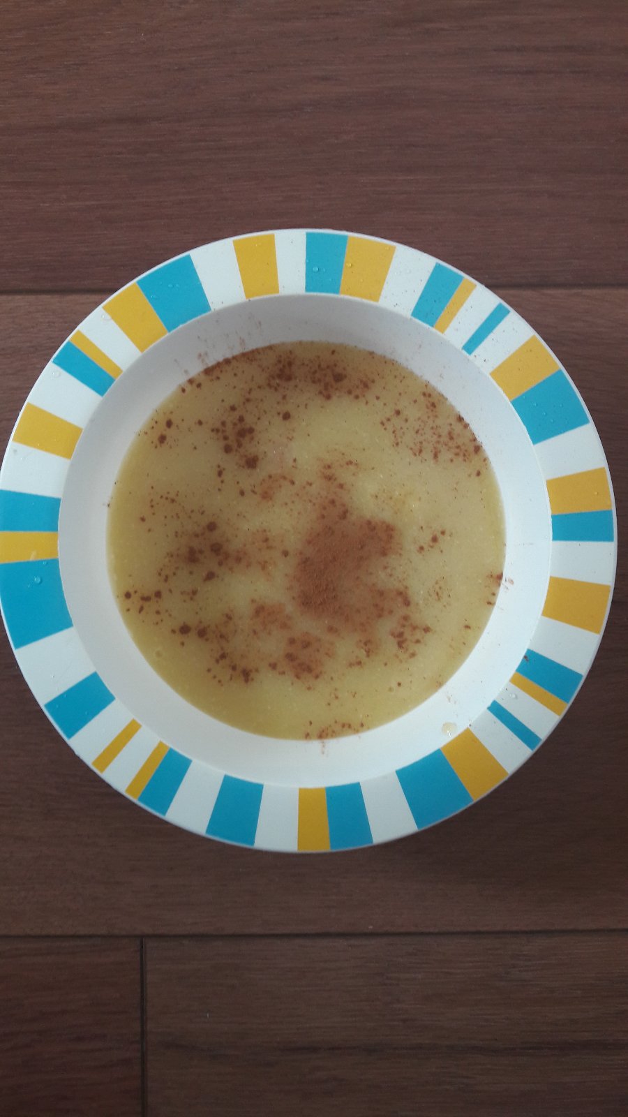 @linsss ano, je to obycajna kukuricna krupica z bezneho obchodu uvarena vo vode asi 12 - 15 min, jablko som sparila v avente 5 minut a spolu pomixovala