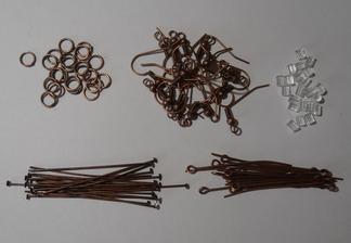 Výhodné balenie komponentov na výrobu náušníc, farba staromeď - 100 ks komponentov, Sada obsahuje :