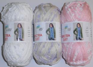 V ponuke volánová pletacia priadza Spectra duet 100 g - farby: biela,, červeno-čierna, bielo-ružová - vypredaná, fialová-slonová kosť - cena 3,10 Eur/klbko