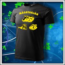 MÄSOTARIÁN! V ponuke nášho e-shopu s vtipnými tričkami sa nachádza nový motív pre anti-vegetariánov. Motív je na unisex i dámskych tričkách. Tento motív je dostupný aj v nadrozmernej veľkosti 3XL v 12 farebných prevedeniach.