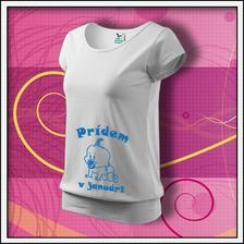 Tehotenské vtipné tričko a šaty s vtipnou potlačou pre tehotné "Prídem v ....." . Single Jersey, 100 % bavlna, finálna silikónová úprava, 150 g/m2 . Výber z veľkostí S - XXL. Trendové dámske tričko s veľmi krátkym rukávom, voľnejšieho strihu, široký spodný lem. Okrúhly priekrčník s úzkym lemom zo zhodného materiálu. Ramená spevnené všitým prúžkom. Tričko má dĺžku do hĺbky bokov. Silikónové zmäkčovadlo zaisťuje splývavosť a mäkkosť na dotyk. Saténová etiketa. Veľkosť potlače cca. 230 x 170 mm