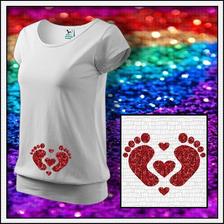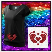 Tehotenské tričká - Nožičky a 3 srdiečka - trblietavá potlač