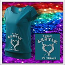 BUDEM ČERTÍK PO TATOVI - Vtipné tehotenské oblečenie s elegantnou trblietavou potlačou (glitter) pre tehotné. V ponuke je 7 rôznych farieb potlače. Zlatá, strieborná, červená, modrá, zelená, fialová a čierna Kvalitné dámske tehotenské tričká a šaty s vtipnou potlačou a jedinečnou originálnou potlačou nie len na nosenie ale aj ako vtipný darček pre tehotné. Dámske vtipné tehotenské tričká a šaty v rôznych farebných prevedeniach. Veľkosti od S až po veľkosť XXL. Tričká nájdete na adrese: http://www.vtipnetricko.com/3-tehotenske-tricko...