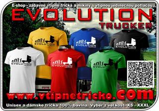 Tričko EVOLUTION TRUCKER - Nový motív určený hlavne kamionistom je na kvalitných unisex tričkách aj s neónovou a reflexnou potlačou. Tento motív je dostupný aj v nadrozmernej veľkosti 3XL v 21 farebných prevedeniach. Tričko pre kamionistu nájdete na adrese: http://www.vtipnetricko.com/137-vtipne-sportove...
