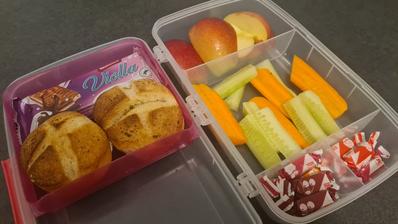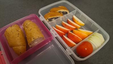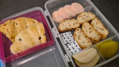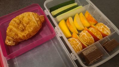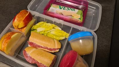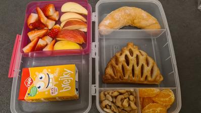 Snažím sa jej baliť raňajky, desiatu a olovrant s tým, že áno, dostane aj sladké, aj biele pečivo. Doma už iba večeria 🥰.