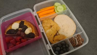 Tiež som rozmýšľala, že na koľko to je jedla. 😉 Naši raňajkujú doma, dávam im na desiatu a olovrant pečivo a porciu zeleniny/ ovocia. Ale toto sú pekné inšpirácie.