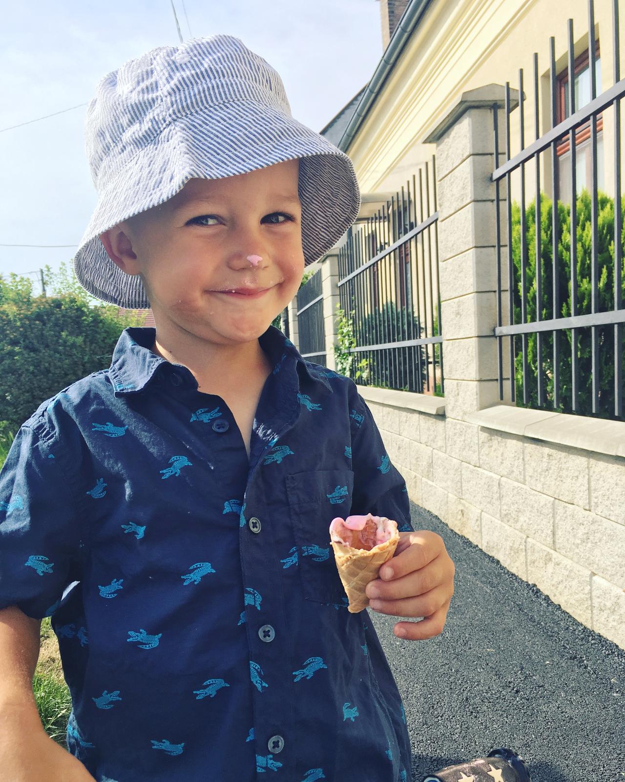 krémom na opaľovanie natieram malú pred odchodom z domu, takže ten nenosím. chodíme von zrána alebo na večer.