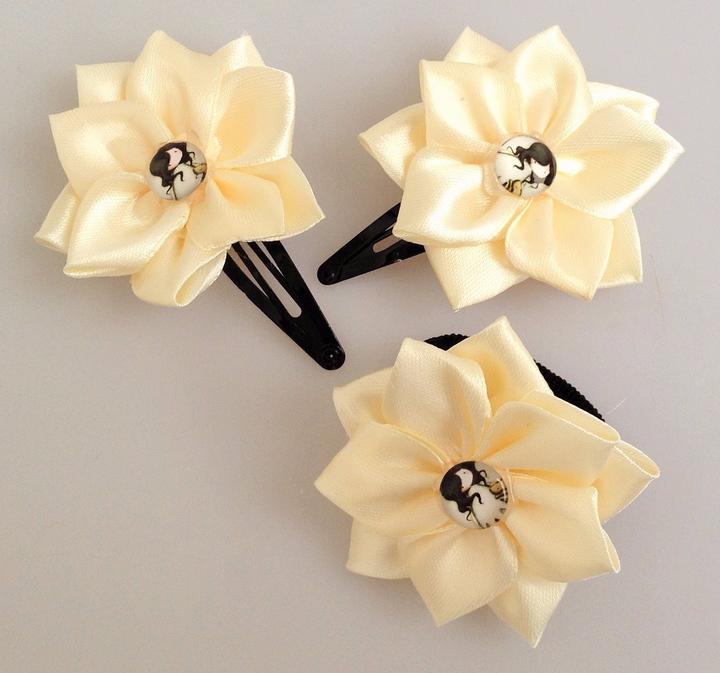 Moje hobby / 3 sety čelenka,sponky,gumička / saten ...3 set/ 2x sponka+gumicka+celenka