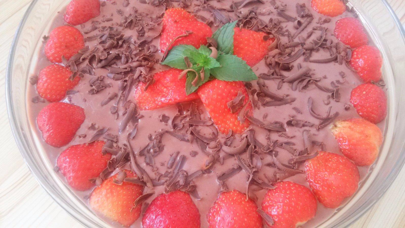 na dnesnu grilovacku v skole k 10 vyrociu,pudingovo/piskotova cokoladova torta s jahodami a bananmi