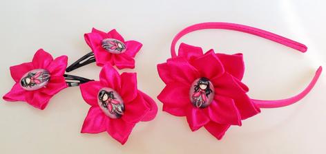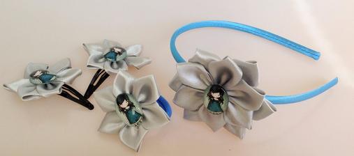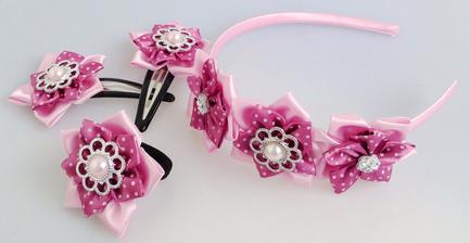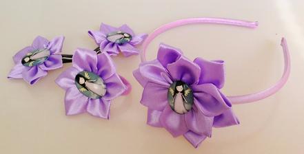 Moje hobby / 3 sety čelenka,sponky,gumička / saten ...3 set/ 2x sponka+gumicka+celenka