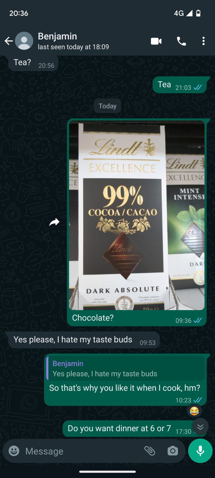 Horka cokolada, aktualne mam 85%- nu a to si radsej nedam nic ako to 😅